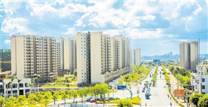 美兰区灵山镇通过棚户区改造,道路更宽、景色更美。 记者曹马志 摄