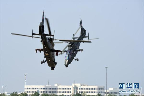 9月14日,陆军“风雷”飞行表演队直-19武装直升机在开幕式上进行双机空中芭蕾飞行。当日,第四届中国天津国际直升机博览会在天津空港经济区开幕。开幕式上,陆军“风雷”飞行表演队为现场观众带来了一场精彩刺激的视觉盛宴。新华社记者张永进摄