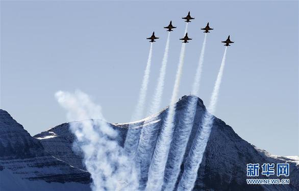 10月11日,在瑞士迈林根空军基地附近,瑞士空军飞机进行飞行表演。