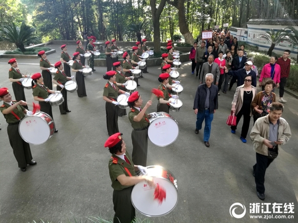 10月25日上午,舟山市定海区海山公园人头攒动,来自舟山市直属单位的近万名老人沿着蜿蜒山道健步而上,感受集体登山迎重阳节的乐趣。