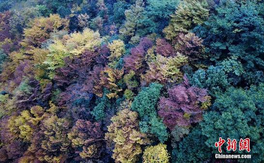 牛庄乡最高海拔2260米,年平均气温9.3℃,属典型的亚热带季风性湿润气候控制区。图为五彩斑斓的树木犹如一个天然调色板。周星亮 摄