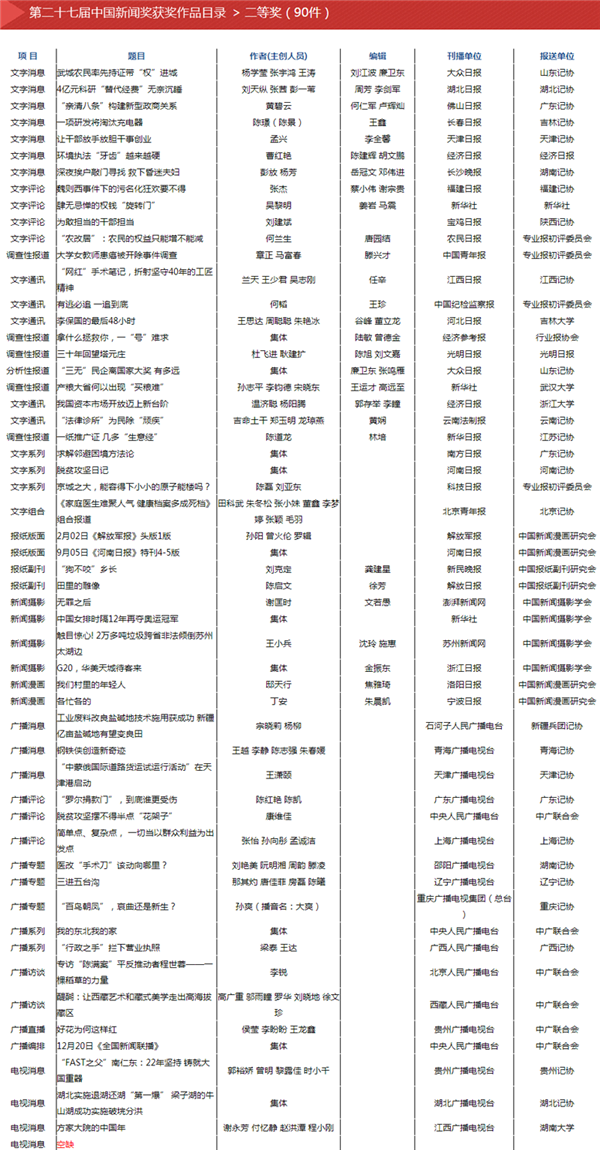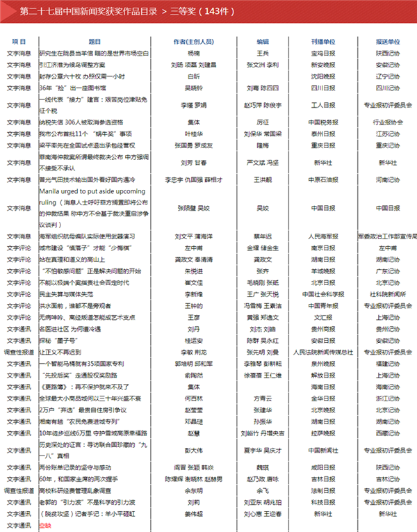 附:第二十七届中国新闻奖获奖作品目录(共287件)
