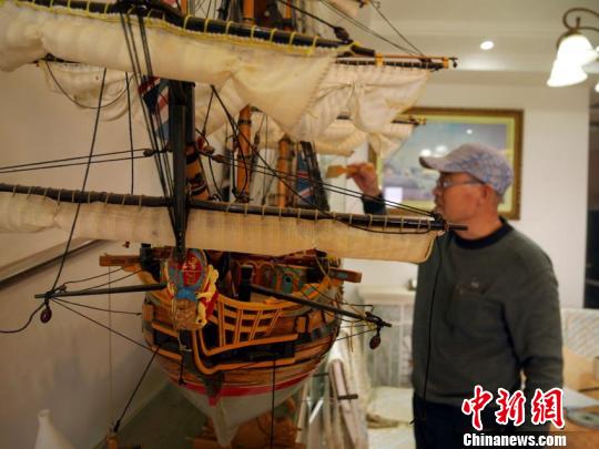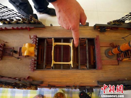 “绳索的走向,还有救生艇这些细微的地方是比较难做的。”赵金龙对制作每一艘战船的要求都很高,包括船体所用的红松,都需要严格的选材。而对于细节上的处理,赵金龙也有自己的标准。“比如船帆是扬帆、还是收起,怎样看着美观,或者是绳索的滑轮如何安装,都需要仔细琢磨。”赵金龙说。
