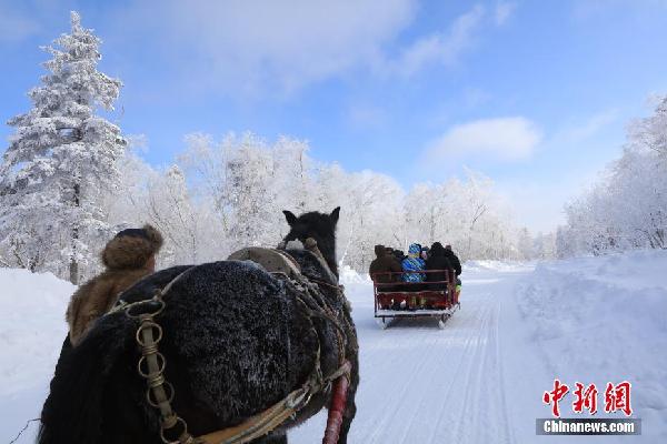 原标题:黑龙江凤凰山森林公园 雾凇树挂装点林海