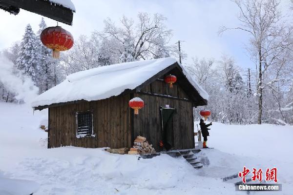 12月7日,游客走进凤凰山国家森林公园,站在高山之巅,极目远眺,白雪共长天一色,群山与旭日同辉。凤凰山国家森林公园坐落在黑龙江省东南部,山河屯重点国有林管理局。凤凰山国家森林公园,是一江两河之源,山川雄峙,峡谷险峻,主峰海拔1696米,有“龙江第一峰”之誉,是集国家森林公园、国家地质公园和国家级自然保护区于一身的AAAA级旅游景区。图为高山雪原美景。中新社记者于琨 摄