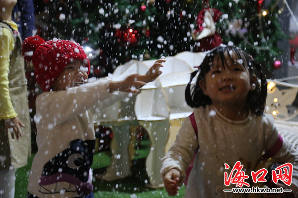 海口网12月24日消息(记者陈五男 摄影报道)你在北方的寒夜里大雪纷飞,我在南方的艳阳里四季如春。平安夜,在海口回暖的冬日里,有这样一群人,转角遇见可触摸“雪花”的圣诞小集市,感受到一份浪漫,收获平安夜里的欢声笑语和一份独家记忆。
