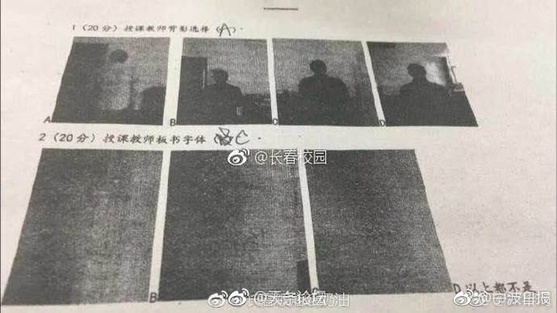 要说“看图认老师”的最高境界,莫过于被称为“听者流泪,闻者悲伤的高校神考题”,找出老师的背影……吉林建筑大学概率论的考卷中出现“授课教师的背影选择”与“授课板书的字体选择”两道题。求没好好听课的同学的心理阴影面积……