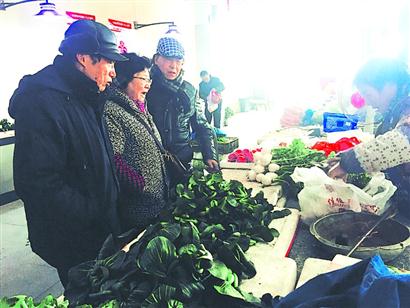 老人们相约去买菜。
