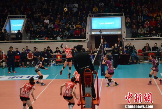 中新网天津1月28日电(马元豪)2017-18赛季中国女排超级联赛第21轮,天津女排主场3:1击败卫冕冠军江苏女排,彻底坐稳四强席位。被誉为“朱婷第二”的小将李盈莹本场比赛独得34分。