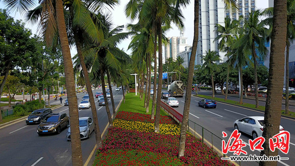 新港天桥上花团锦簇,犹如一条“空中花廊”,一排排三角梅齐齐绽放,一朵朵紫红色的花儿为椰城的冬天带来一抹艳丽的色彩;龙昆南路中央绿化带,一盆盆鸡冠花、孔雀草、三角梅争奇斗艳,与挺拔的椰子树、嫩绿的大叶油草相映成趣,一排排、一簇簇造型各异,红的似火、粉的似霞让人目不暇接,点缀了整条道路;滨海大道上,眼前是一片片绿油油的草坪,透过绿树看到远处的海面,一眼望去,碧绿与蔚蓝衔接映衬,美不胜收……这是海口推进城市更新,做好城市“五化”工作带来的直接效果。