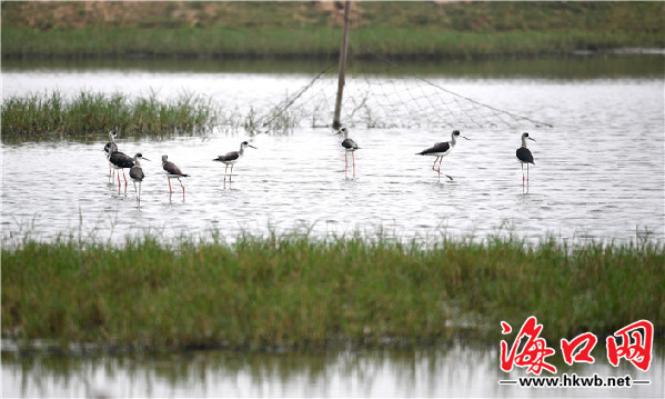 栖息在下塘湿地小区内的黑翅长脚鹬。记者石中华 摄