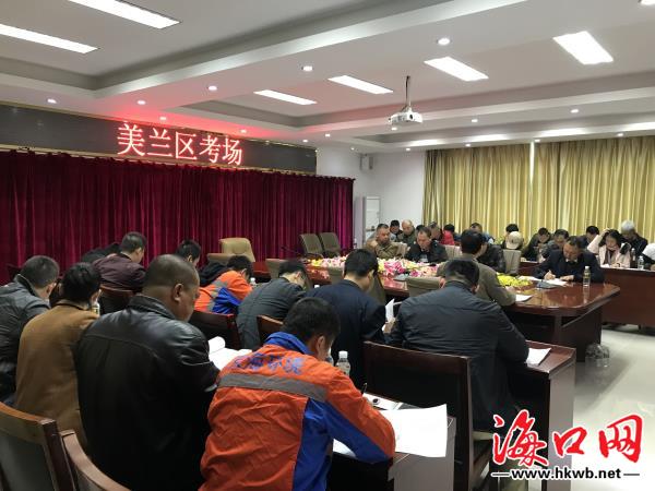 当天下午,海口网(微信号:haikouwang2013)记者来到美兰区考场,现场坐满了美兰区环卫局、京兰环卫公司的工作人员。