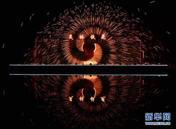 2月17日,河北磁县匠人在“打铁花”。新华社记者王晓摄