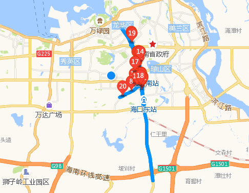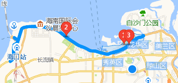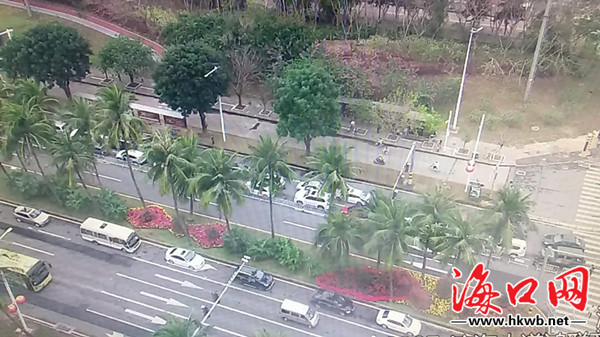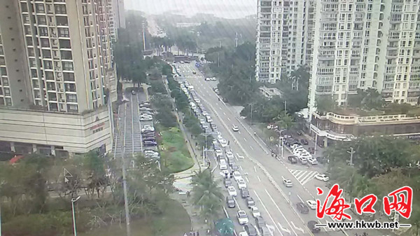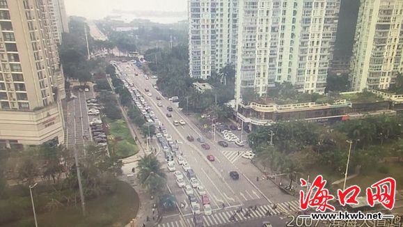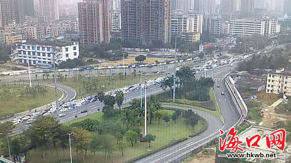 丘滨路口南往北尾部排至海秀立交桥,西往东尾部排至港航大厦;