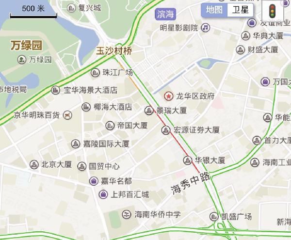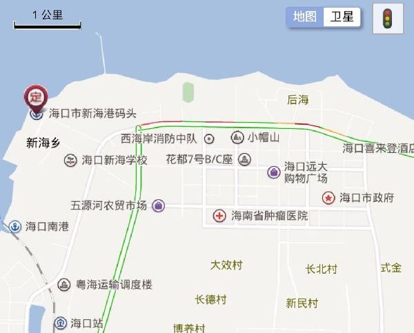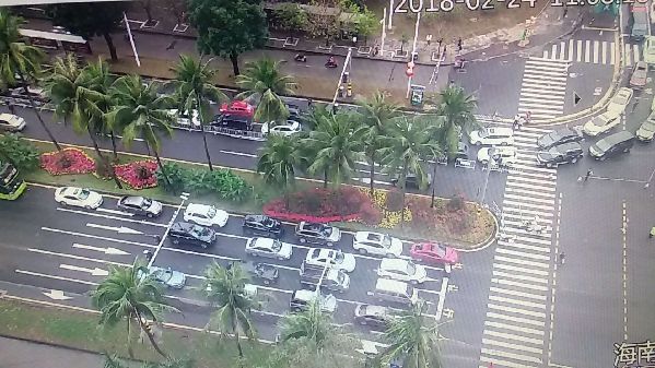 【13:38】截至24日13时 海口滨海大道海港路口拥堵