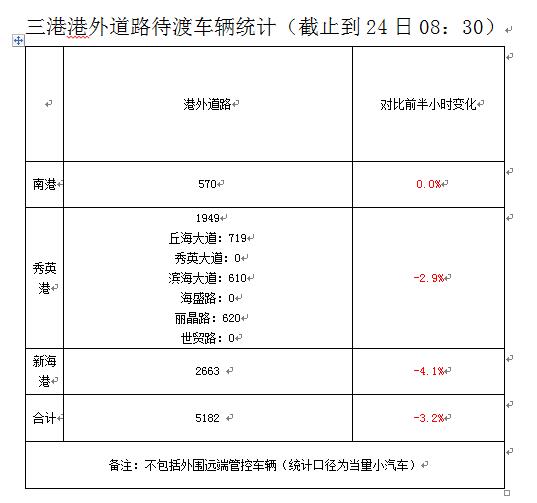 【8:53】截至24日8时30分:海口三港外道路约有5182辆车辆滞留