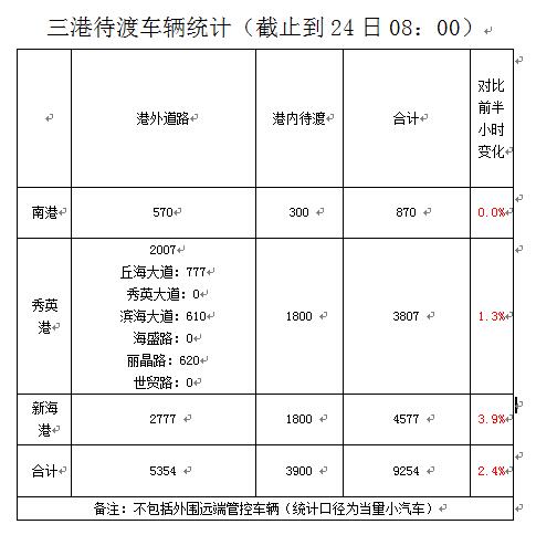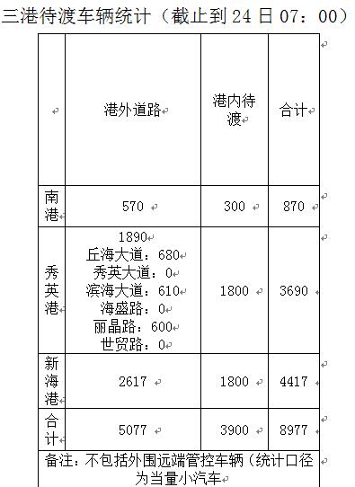 【7:10】截至24日7时 海口三港共计8977辆车待渡