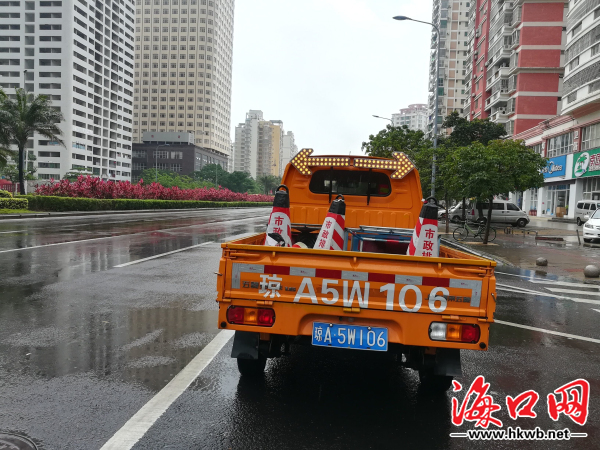 市市政局排水车辆值守在易积水路段。