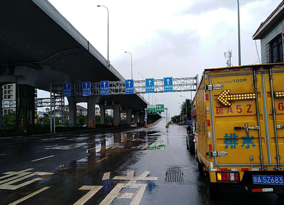 5、丘海大道海瑞桥段:长 500米,宽 50米,深 20 厘米,车辆艰难通行;车辆可以通过东西两侧匝道通行;