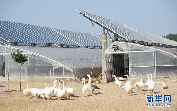 这是涟水县唐集镇的鑫源“农光互补”光伏项目发电场,“一地两用、阳光共享”上方光伏板发电、光伏板下兼顾农业生产(6月23日摄)。近年来,江苏省涟水县积极推进“农光互补”等光伏新能源项目建设,探索“光伏+农业”发展新模式。“一地两用、阳光共享”上方光伏板发电、光伏板下兼顾农业生产,不仅提升土地综合利用率,也推动了当地清洁能源和绿色经济的发展。新华社记者李雨泽摄