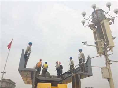 冒着高温清洗检修天安门广场和长安街上的253基华灯,平均年龄27岁的“华灯班”——