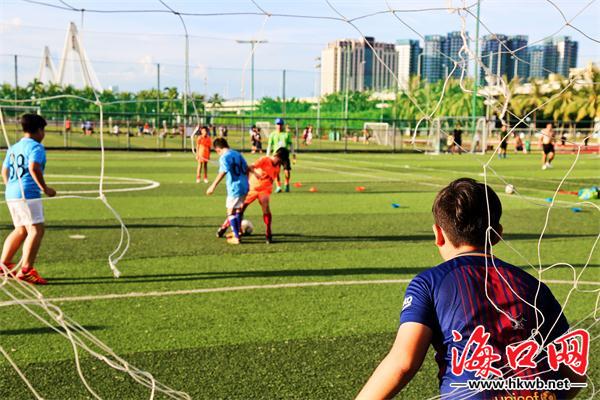 在世纪公园进行足球训练的孩子们。