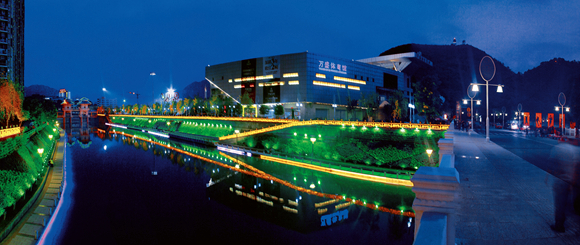 万盛体育馆夜景。万盛经开区党工委宣传部供图 华龙网发