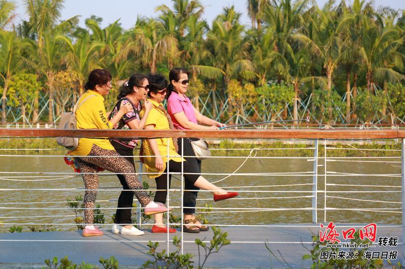 游客来到五源河国家级湿地公园合影留下美丽笑容。本报记者 李天平 摄