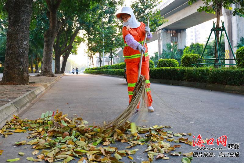 海口环卫工人坚守岗位,清洁海口街头巷尾。本报记者 李天平 摄