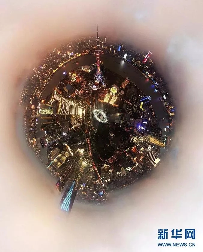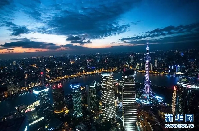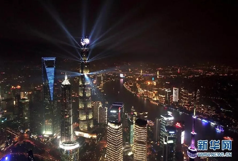 上海陆家嘴的夜景鸟瞰照片(10月17日无人机拍摄)