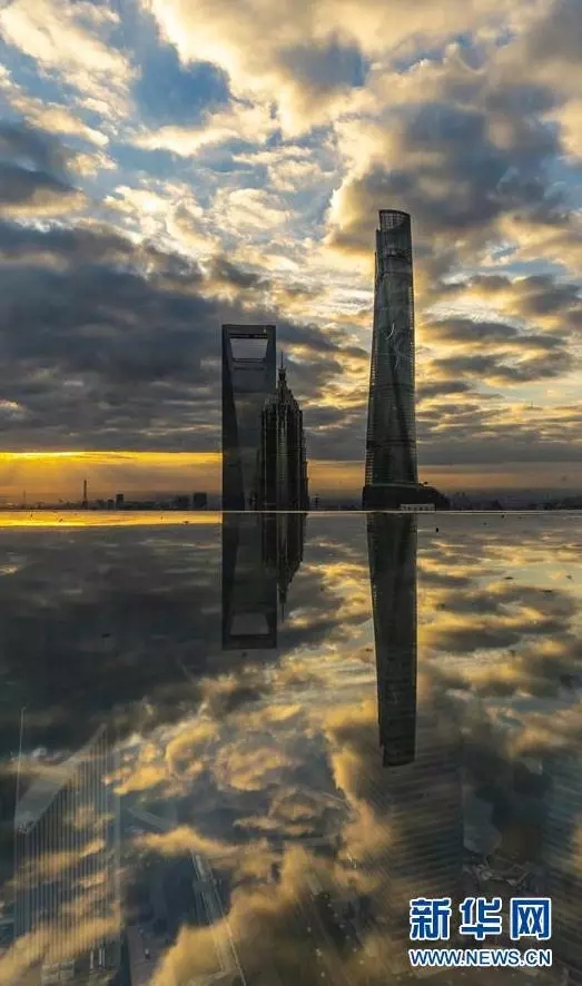 11月2日,上海环球金融中心、上海金茂大厦和上海中心大厦沐浴在晨光之中。