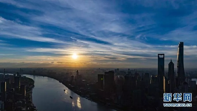 11月1日,上海浦江两岸的建筑沐浴在晨光中。