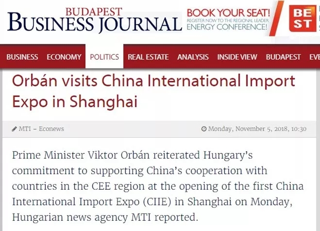 《布达佩斯商业杂志》5日报道说,匈牙利总理欧尔班在首届中国国际进口博览会上说,匈牙利支持中国与中东欧国家的合作。