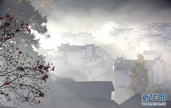 11月上旬,江西婺源晨雾、梯田、枫叶、晒秋等美景构成一幅美丽的画卷,令人流连忘返。