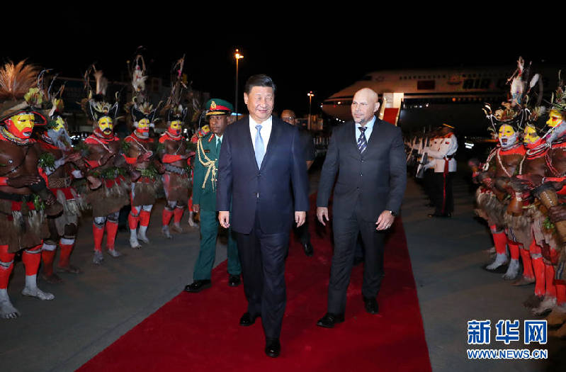 11月15日,国家主席习近平乘专机抵达莫尔兹比港,开始对巴布亚新几内亚独立国进行国事访问、同建交太平洋岛国领导人会晤并出席亚太经合组织第二十六次领导人非正式会议。巴布亚新几内亚副总理埃布尔率政府高级官员在舷梯旁热情迎接。新华社记者 鞠 鹏摄
