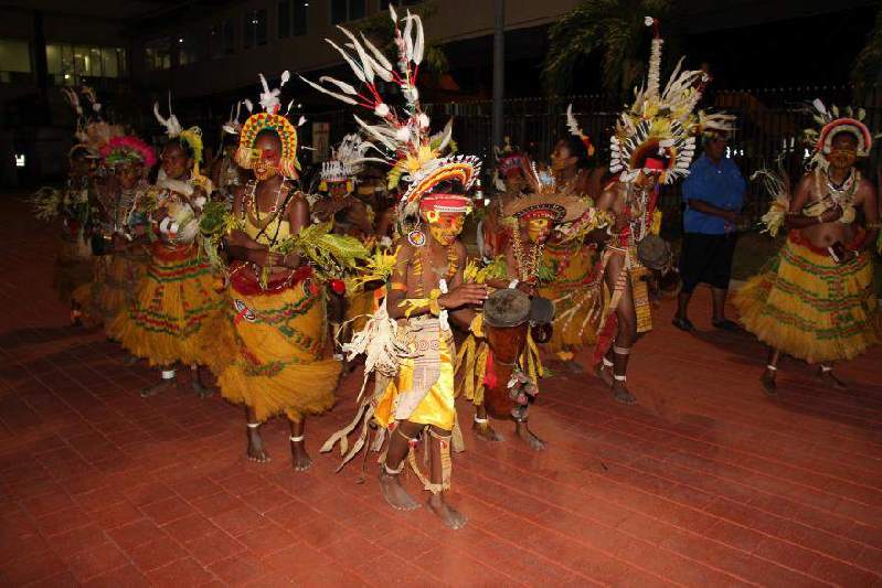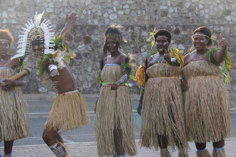 巴新青少年跳起热情的舞蹈,欢迎习近平主席。人民日报记者王云松摄