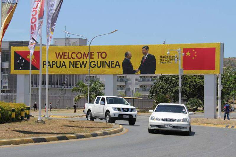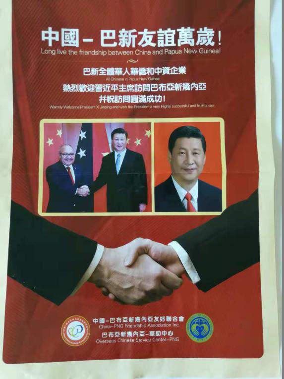 巴新首都莫尔兹比港街头欢迎习近平主席访问巴新的横幅。人民日报记者王云松摄