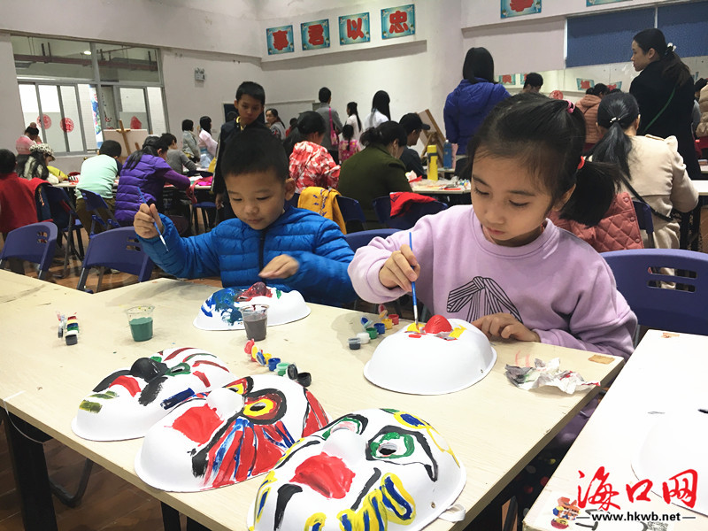 孩子们体验画脸谱。(团市委供图)