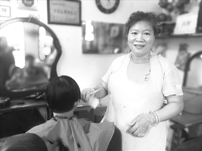 理发间隙,李兰香向记者介绍,她今年55岁,退休前是港务局的职工。1997年,港务局的老领导得知李兰香曾学过理发,便建议她在小区里开一家理发店,为海口港小区居民服务。