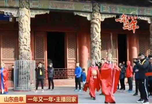 央视网消息:新闻频道播一年,今天回家过个年。各位观众朋友,大家过年好!我现在是在山东曲阜带大家感受一下在孔子故里过年是什么滋味。刚刚伴随着声声晨钟,我身后孔庙的大门也正式打开,看我今天穿的这身行头啊,今天我就扮演一把礼生,带大家感受一下祭孔展演的魅力。