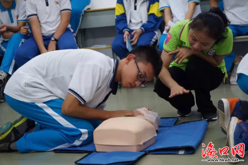 黄靖洋参与急救知识培训。(海南省海垦中学供图)