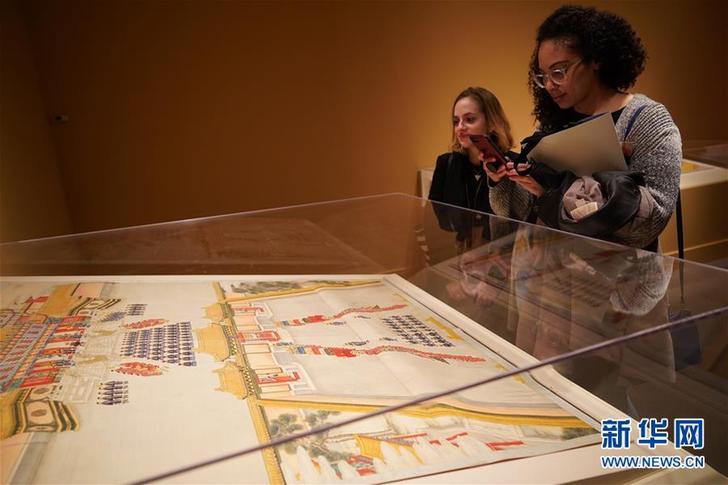 3月28日,在位于美国首都华盛顿的弗里尔和萨克勒博物馆,观众在“凤舞紫禁:清代皇后的艺术和生活”媒体预展上参观。反映清代宫廷女性生活的“凤舞紫禁:清代皇后的艺术和生活”展览将于3月30日在美国首都华盛顿正式拉开帷幕。此次展览由故宫博物院和美国弗里尔和萨克勒博物馆、皮博迪-埃塞克斯博物馆共同举办,将持续至6月23日,届时将有165件(套)故宫藏品在弗里尔和萨克勒博物馆对公众展出。这是故宫藏品赴美展出规模最大的一次。 新华社记者 刘杰 摄