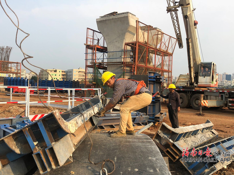 “一定要注意特殊部位和常规部位的钢筋绑扎间隙差异。”5月5日下午7时许,在海口海秀快速路(二期)项目改建段工地现场,项目钢筋班班长白宗岗麻利地爬上高达9米的墩身组合外架,拿着卷尺仔细测量着绑扎好的钢筋间隙。