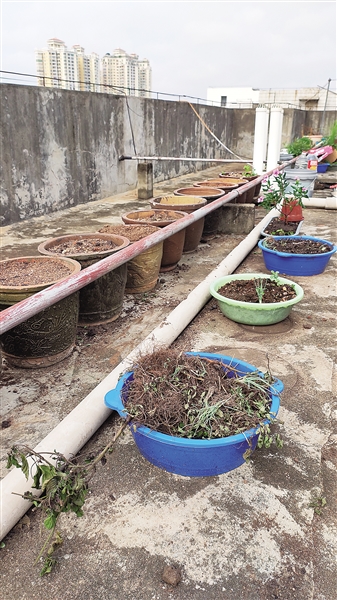 “实际上,我们物业在海口双创期间已经组织过一次清理,将楼顶种的东西全部清除了,但后来他们又自己种起来了。”小区物业人员说,目前就是要求双方都不要种。