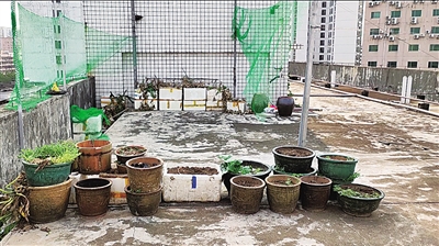 记者5日下午来到海口农垦东大院小区12栋B座楼顶看到,楼顶有多处种植了蔬菜和花类等植物,有瓜类也有叶菜。据住在顶楼(8楼)的业主介绍,6楼一位业主在她家楼顶位置种植蔬菜多年,当初她的确也同意对方种,但后来发现对方种菜对自己生活影响大。