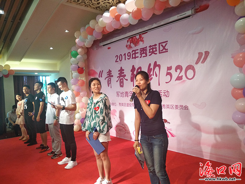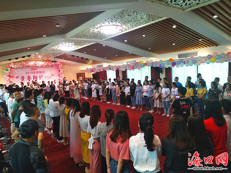 海口网5月20日消息(记者刘杰 通讯员陈创淼 吴一华摄影报道)今天是5月20日,被誉为“网络情人节”,在这寓意着爱情美好的日子,来自海口秀英辖区部队、机关单位以及学校、医院等企事业单位的200余名青年男女嘉宾相聚在永兴镇冯塘绿园,参加2019年第三届秀英区“青春相约520”军地青年交友联谊活动,寻找属于自己的缘分。