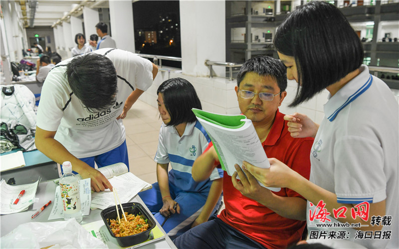 海口市第一中学老师利用晚饭时间为学生辅导。