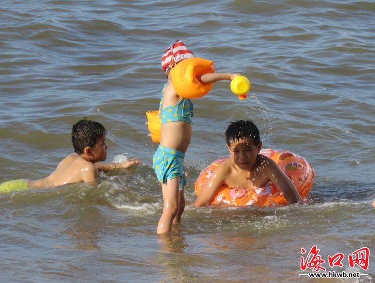 海口网6月7日消息(记者伍凤妹 摄影报道)6月7日是端午佳节,当天,不少市民游客携家带口到海口假日海滩、西秀海滩等地“洗龙水”,海滩上人来人往,热闹非凡。