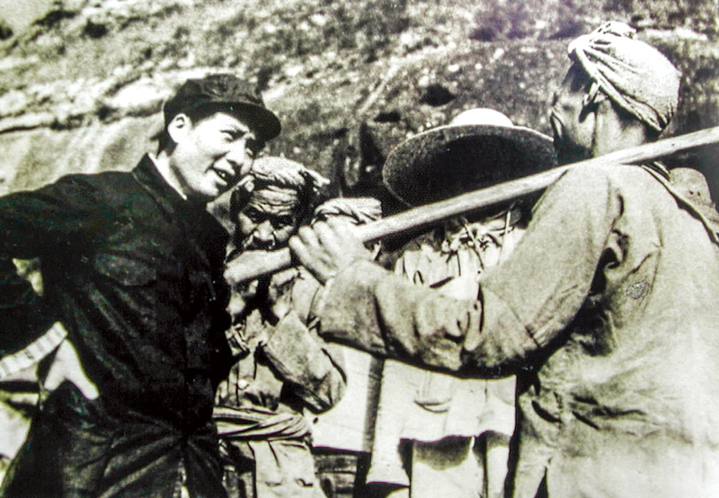 图为毛泽东在延安杨家岭和农民谈话,询问他们的生产和生活情况。 新华社发