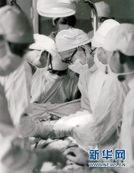 苏鸿熙教授(右三)在进行手术(资料图)。新华社 发